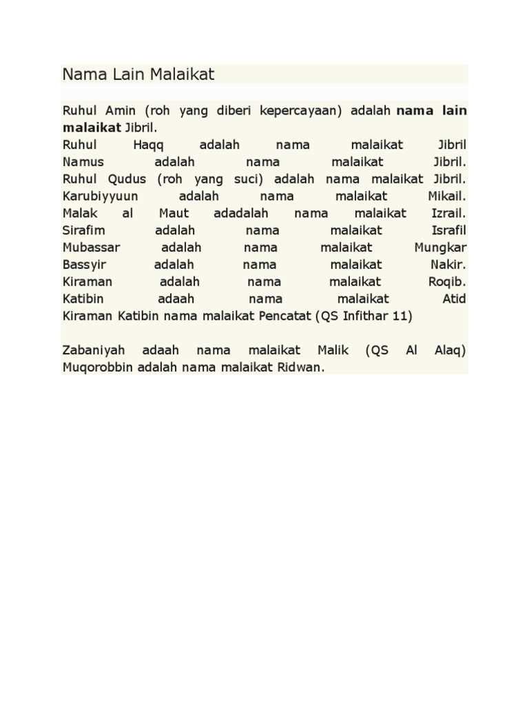 | Judul Surah: Sebutkan Nama Lain Malaikat Gelar Malaikat Dan Julukan Malaikat Penulis Cilik |